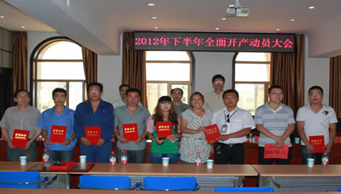 2012年7月12日上午,寧夏金維制藥有限公司2012年度上半年安全生產(chǎn)工作總結、GMP認證總結表彰及下半年全面開產(chǎn)動員大會在辦公樓六樓會議室順利召開。會議由企業(yè)管理部副部長劉海玉主持,公司董事長高勇、總經(jīng)理陳德剛、財務總監(jiān)高廣禮、生產(chǎn)副總監(jiān)王智及各部門、車間等領導出席會議,公司全體員工參加。