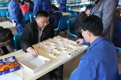 本次大賽在公司黨支部和工會(huì)委員會(huì)全體成員的共同努力和精心策劃下,各部門、車間的相互配合組織和積極參與下,共有進(jìn)100多人參加本次比賽,在比賽過程中,選手們鎮(zhèn)靜自若的指揮著“千軍萬馬,奔馳棋場”,相對(duì)雙方斗志斗勇,一個(gè)個(gè)圓形的棋子此時(shí)此刻在他們手中儼然化身成為一位位勇猛的戰(zhàn)將?!帮w馬”、“走象”、“起炮”、“進(jìn)卒”……,選手們?cè)谛⌒〉钠寰稚涎堇[了一場“指點(diǎn)江山”、“揮斥方遒”的精彩戰(zhàn)局,沒有古代戰(zhàn)場的硝煙彌漫,卻一樣有金戈鐵馬的驍勇善戰(zhàn)。最后公司員工董曉海、王紅梅等人分別獲得了個(gè)人比賽項(xiàng)目的勝利,同時(shí)101車間、102車間分別獲得了團(tuán)體比賽的第一名和第二名。比賽過程中淘汰下來的選手都靜靜地觀看別人的比賽,一邊琢磨他們的走法,另一方面思考一下自己剛才的走法,以此提高自己的水平。賽后,參賽的選手都意猶未盡,表示在這次比賽中獲益匪淺。